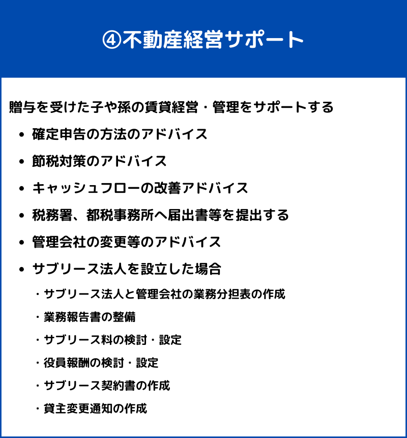 贈与を受けた子や孫の賃貸経営・管理などをサポート